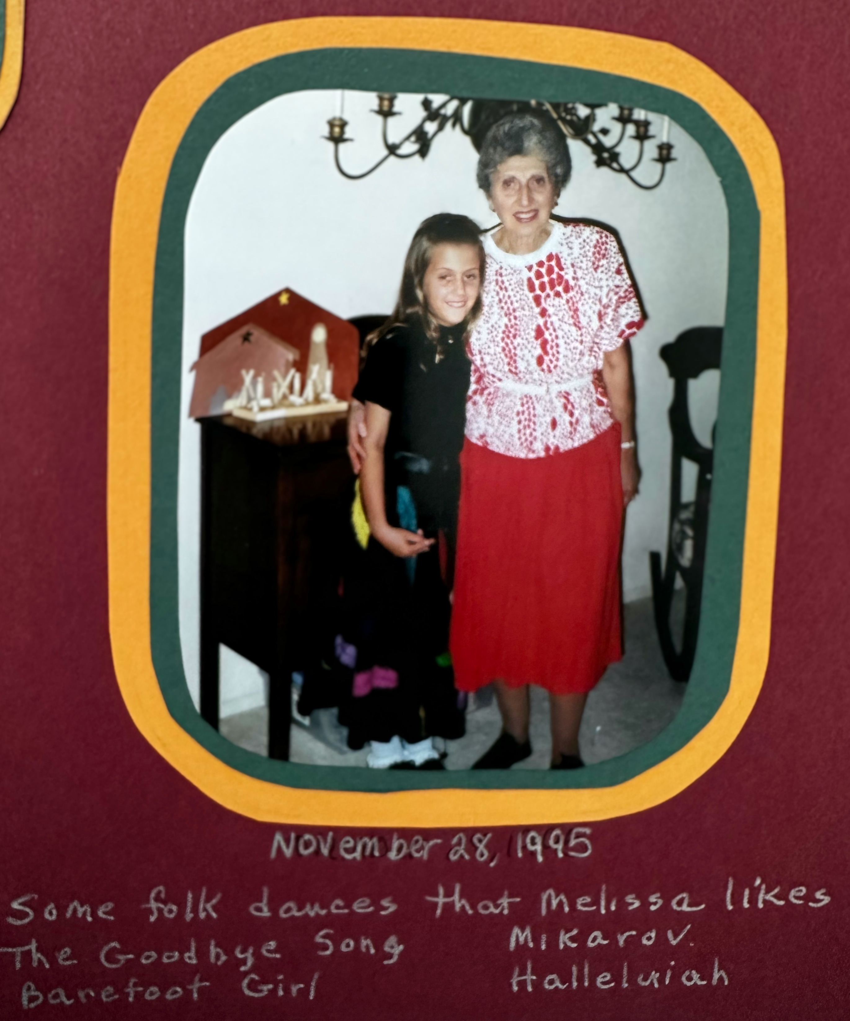 When I was little, Grandma would take me folk dancing. I think I was the only little girl who went. I really loved wearing the long skirts and how they twirled around, especially the feather skirt. There were a few songs that I liked in particular, I’m sure Grandma has them written down somewhere but I remember one was called “Barefoot Girl”. I wrote this before finding the picture below… She would always ask them to play these songs for me.